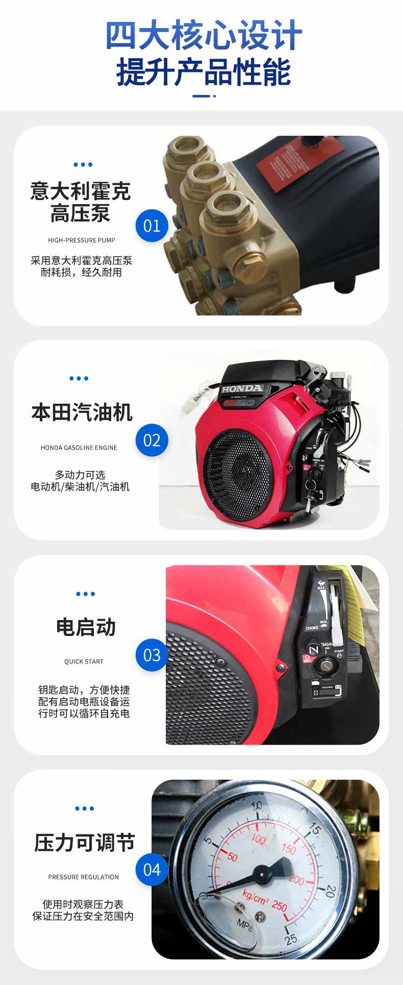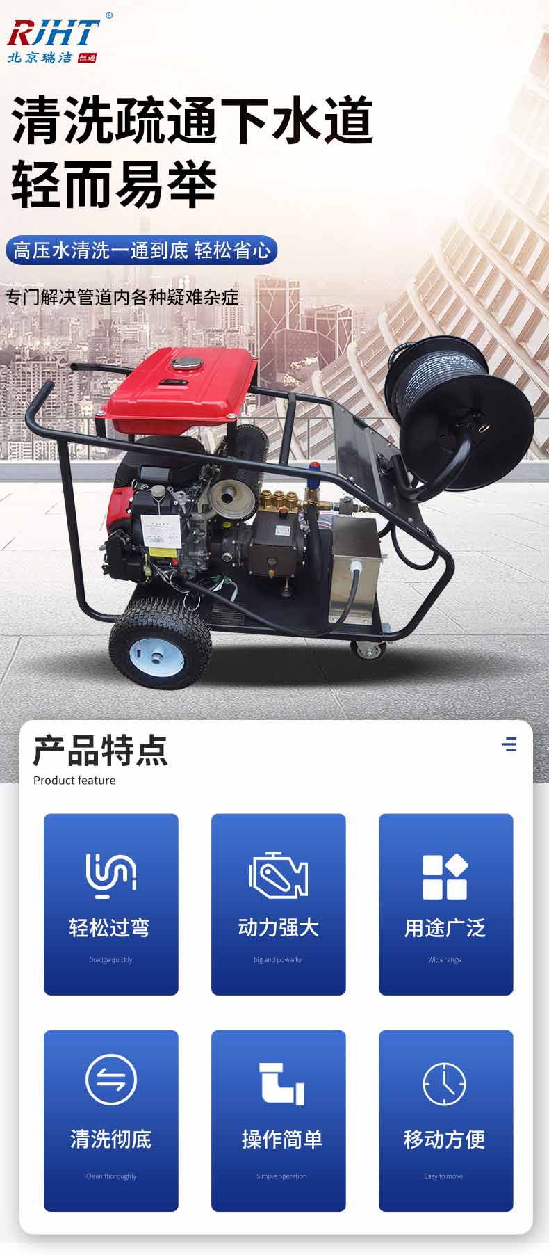 RJHT-680型 燃油款 高壓管道清洗機(jī),采用意大利進(jìn)口高壓泵、壓力調(diào)節(jié)裝置、不銹鋼壓力表和精密過(guò)濾器等多種安全防護(hù)裝置,具有安全性高,使用操作穩(wěn)定等優(yōu)點(diǎn)。