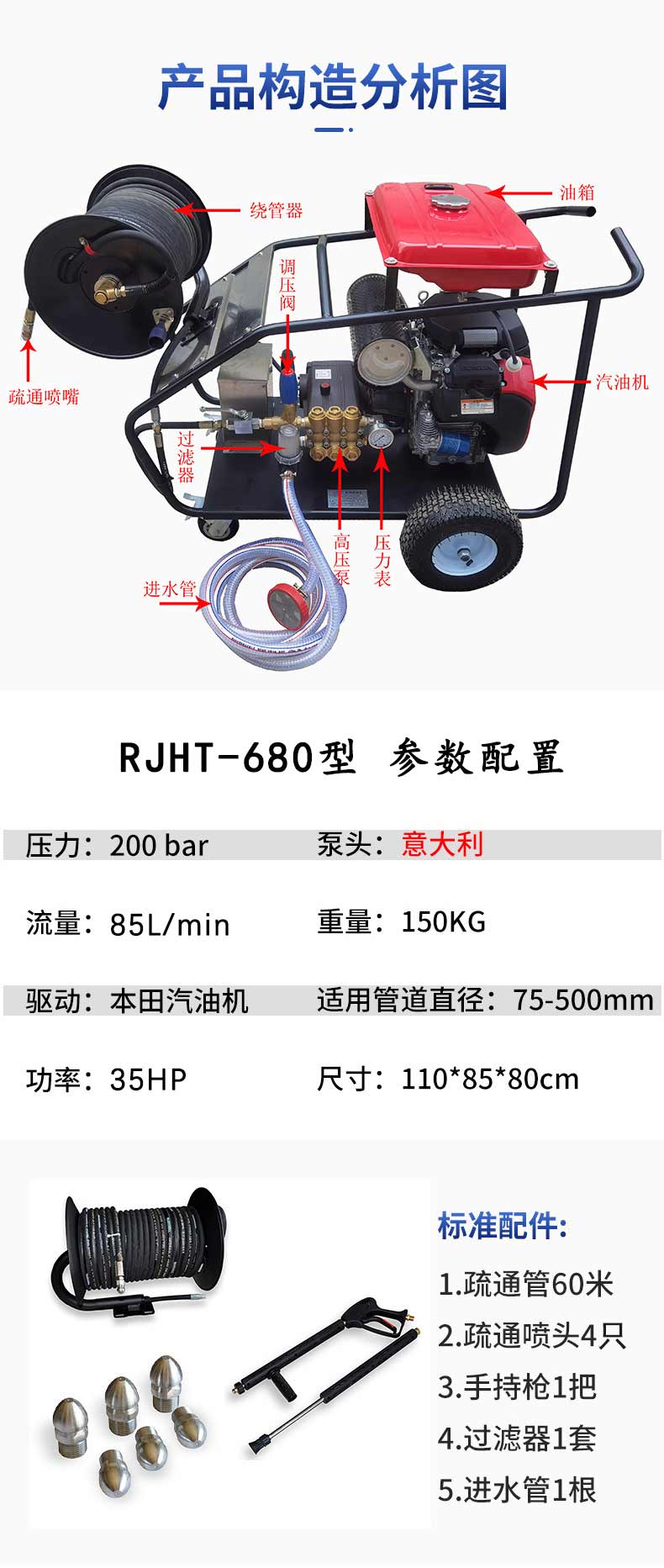 管道疏通機(jī)>680型 燃油款 高壓疏通機(jī)